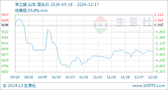 12月17日生意社苯乙烯基准价为8908.00元/吨