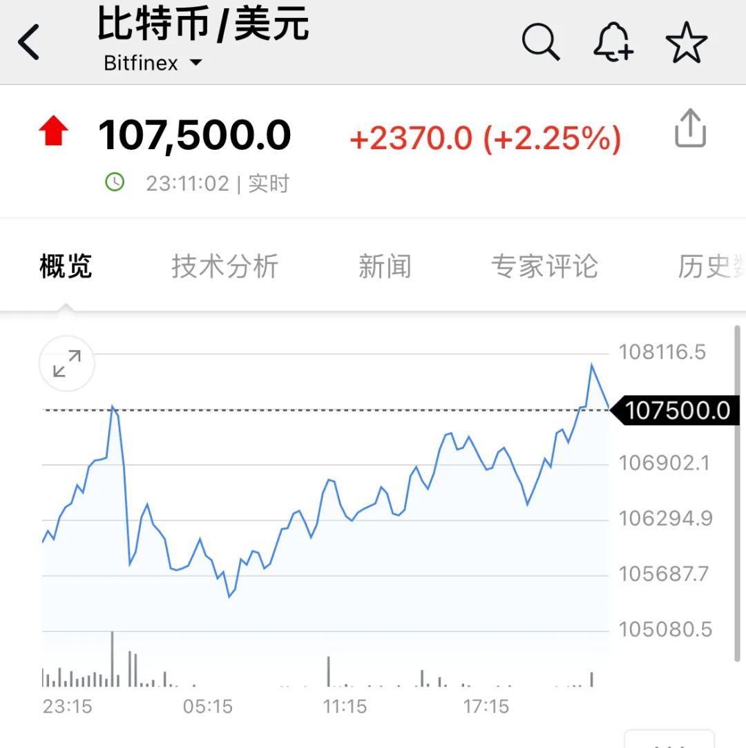 比特币向上触及108000美元,续创新高,24小时内涨超2%。