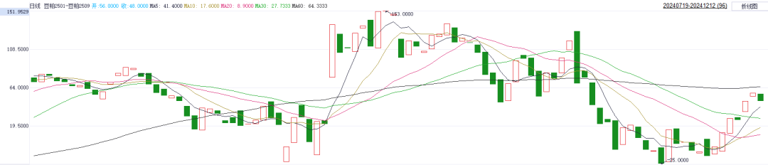 据同花顺消息,由于目前棕榈油价格偏高,印度为寻求其他替代油脂从而减少对棕榈油采购,印度当地炼油厂预测,12月印度进口量或减少至60万吨。另外,由于进口棕榈油价格偏高,进口成本的增加,我国加工企业竞争力减弱,从而减少了原料采购,导致进口商买船偏少。从季节性分析,明年5月份是棕榈油集中供应期,预计5月合约到期前总体走势偏弱。而豆油5月正处于北半球大豆刚刚种植,受种植期及生长期天气状况影响,令豆价上涨概率可能偏大。