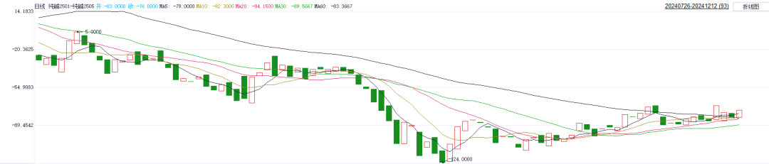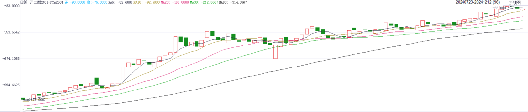 操作策略:多乙二醇空PTA 01跨品种套利策略,可适当关注。若差价下破-286则取消关注。