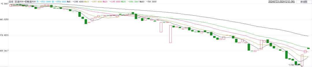 操作策略:多豆油空棕榈05为跨品种套利策略,可适当关注。若跌破-1420取消关注。