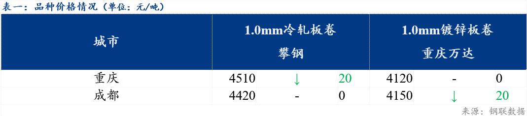 综合来看,短期期货走弱,市场冷轧各钢厂资源都在陆续发货,预计明日西南地区冷轧及镀锌板卷价格窄幅调整运行。