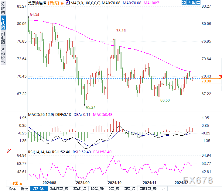 此外,美国石油协会(API)昨日公布的数据显示,截至12月13日当周,美国原油库存下降了469万桶,这一数据也为油价提供了支撑。然而,尽管库存数据表现强劲,油市的上涨空间依然受到其他不确定因素的制约,包括美联储未来的利率路径以及全球经济的增长前景。当前,市场普遍认为美联储将降息25个基点,并可能在2025年进一步放缓降息步伐,这种政策预期为美元提供了支撑,并可能间接限制油价的上涨。