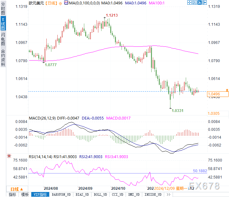 欧元兑美元则继续保持弱势,当前交投于1.0489,日内下跌0.01%。欧元区的经济数据相对疲弱,加上市场对美联储政策的高度关注,使得欧元难以突破当前的震荡区间。未来几天,市场将继续关注美联储的决策和欧元区的经济前景,尤其是即将发布的德国经济数据及欧央行的政策取向。