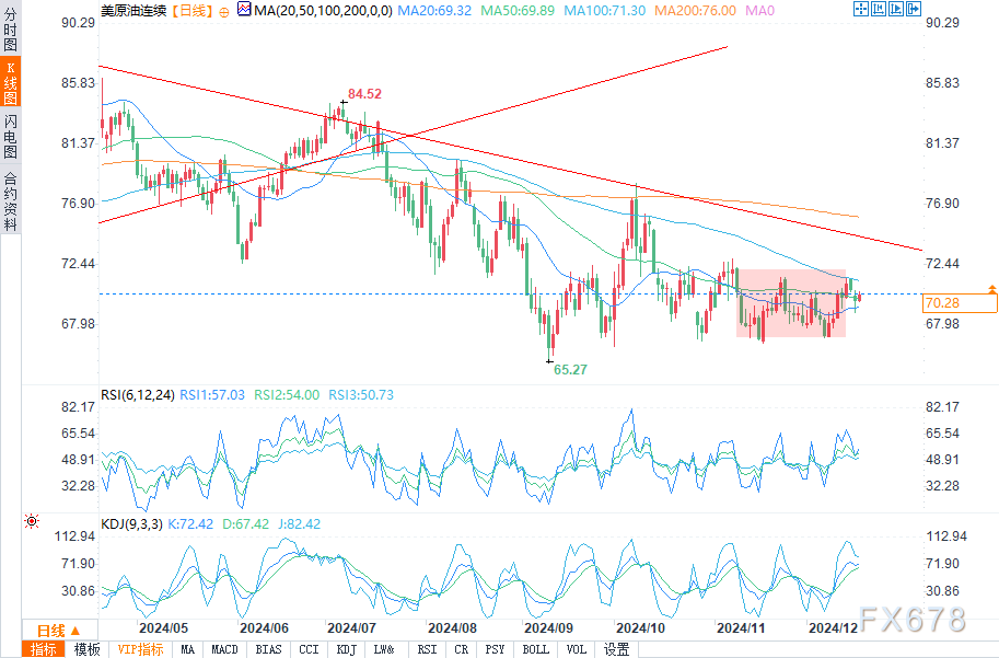 汇通财经APP讯——周二(12月18日)欧盘时段,WTI原油期货价格小幅走高,交易价格高于50日移动均线69.89美元。市场参与者正谨慎地尝试建立支撑位。如果未能维持50日支撑位,表明可能出现看跌逆转。