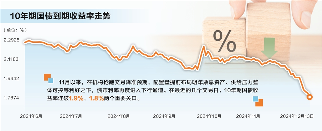 11月以来,在机构抢跑交易降准预期、配置盘提前布局明年票息资产、供给压力整体可控等利好之下,债市利率再度进入下行通道。近期,随着政策释放进一步宽松信号,债市做多情绪再度高涨,10年期国债利率迎来新低。