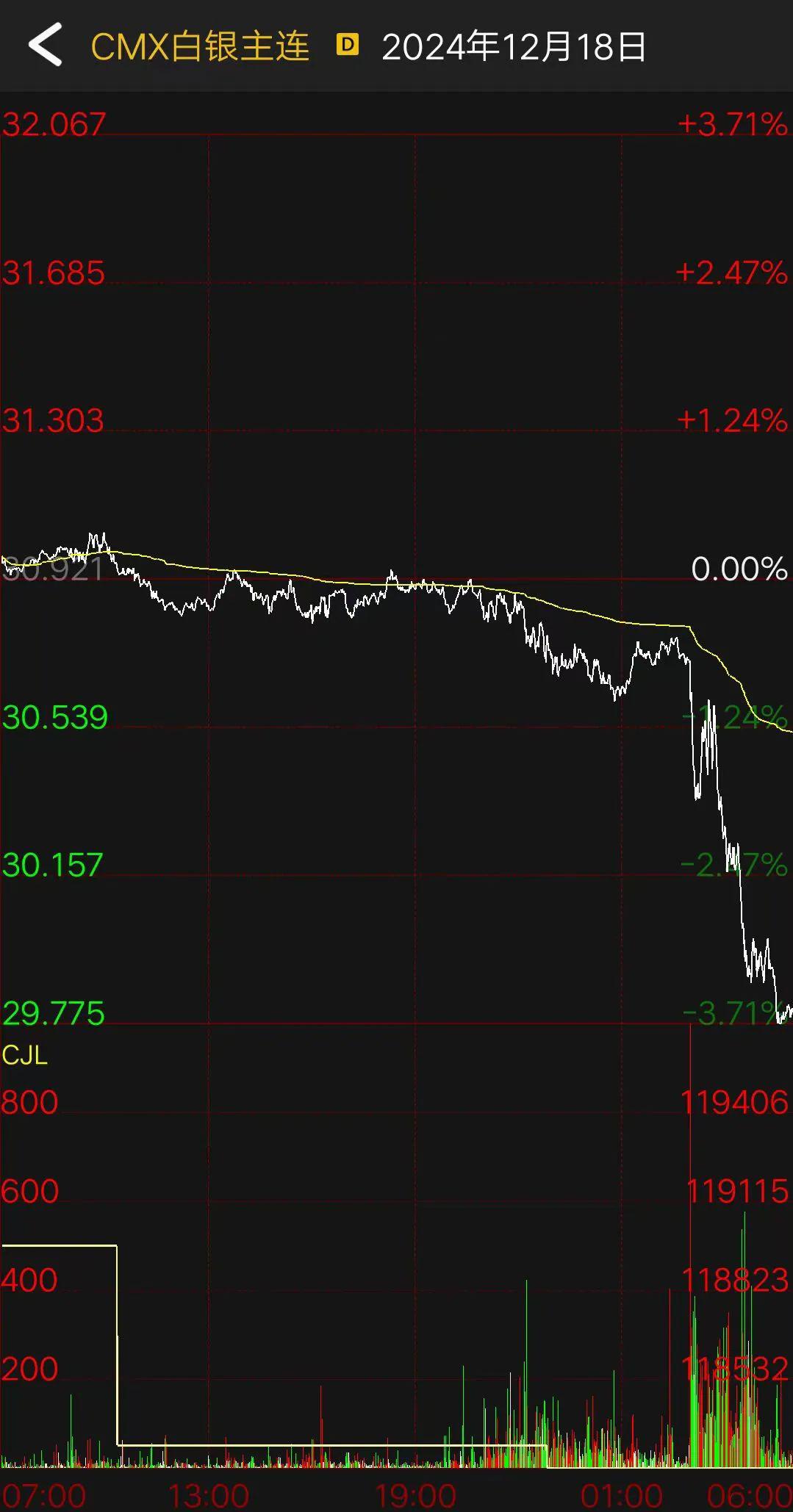 COMEX黄金期货尾盘跌2.25%,报2602.2美元/盎司。COMEX白银期货尾盘跌3.54%,报29.825美元/盎司。