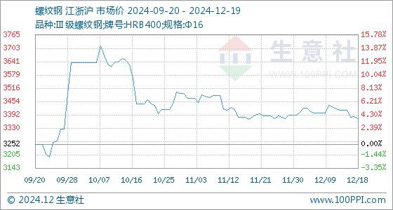 12月19日生意社螺纹钢基准价为3372.86元/吨