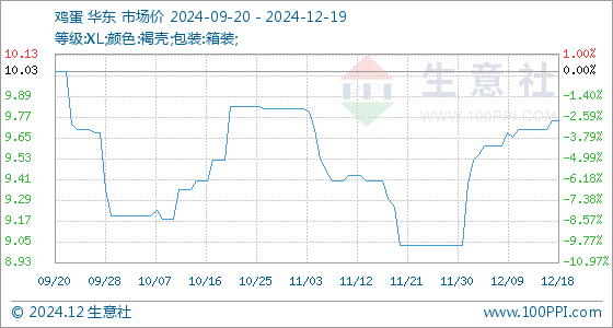 12月19日生意社鸡蛋基准价为9.75元/公斤