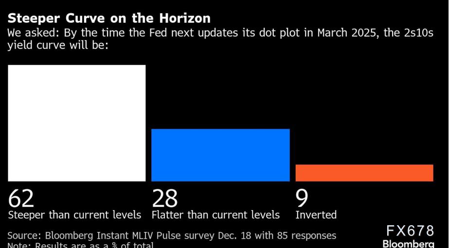受访者表示,美联储最终可能会变得更加强硬:36%的受访者表示,美联储低估了其长期中性利率,即既不促进也不抑制经济活动的利率。即使官员们将增长率预测从9月份的2.9%左右提高到3%,情况也是如此。四分之一的人表示美联储对中性的估计过高,39%的人表示这一估计是准确的。62%的调查受访者表示,3月份美国国债收益率曲线可能会更加陡峭。
