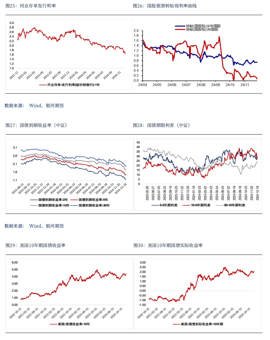 综合来看,近期公布的基本面数据整体不及预期,宽松的货币政策基调下,债市走势仍难言反转。但一方面年内资金面可能对债市收益率的持续下行形成一定约束;另一方面,市场对于后续货币政策加码也已提前有所定价,叠加央行重提利率风险,我们倾向于认为当前做多性价比相对不高。