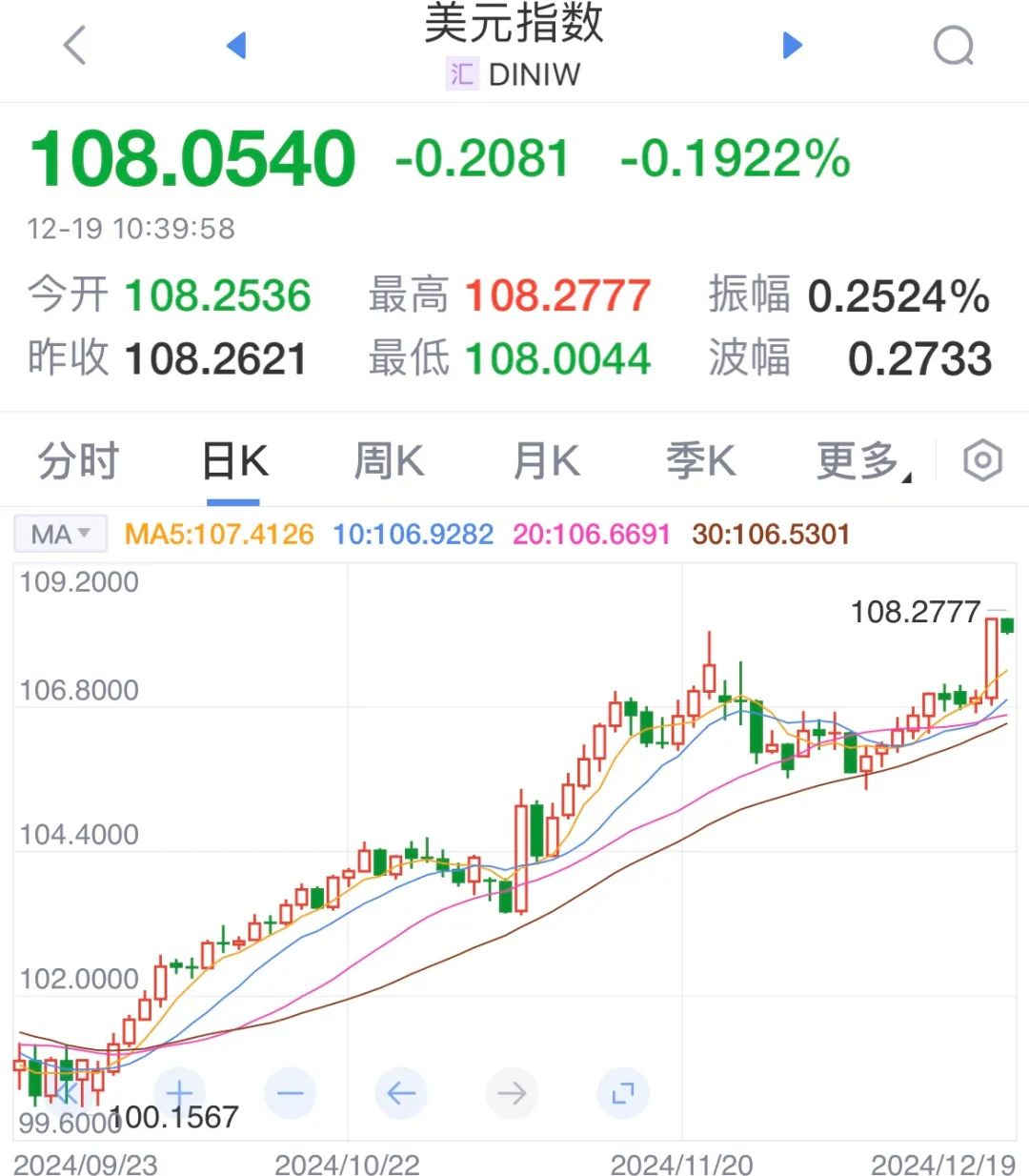 今天凌晨,美联储如期降息25个基点,并暗示放缓降息步伐。美联储利率预测点阵图显示,2025年降息幅度从4次调整为2次。国际金价在利率决议后大幅下跌逾50美元,一度跌破2600美元/盎司关口。