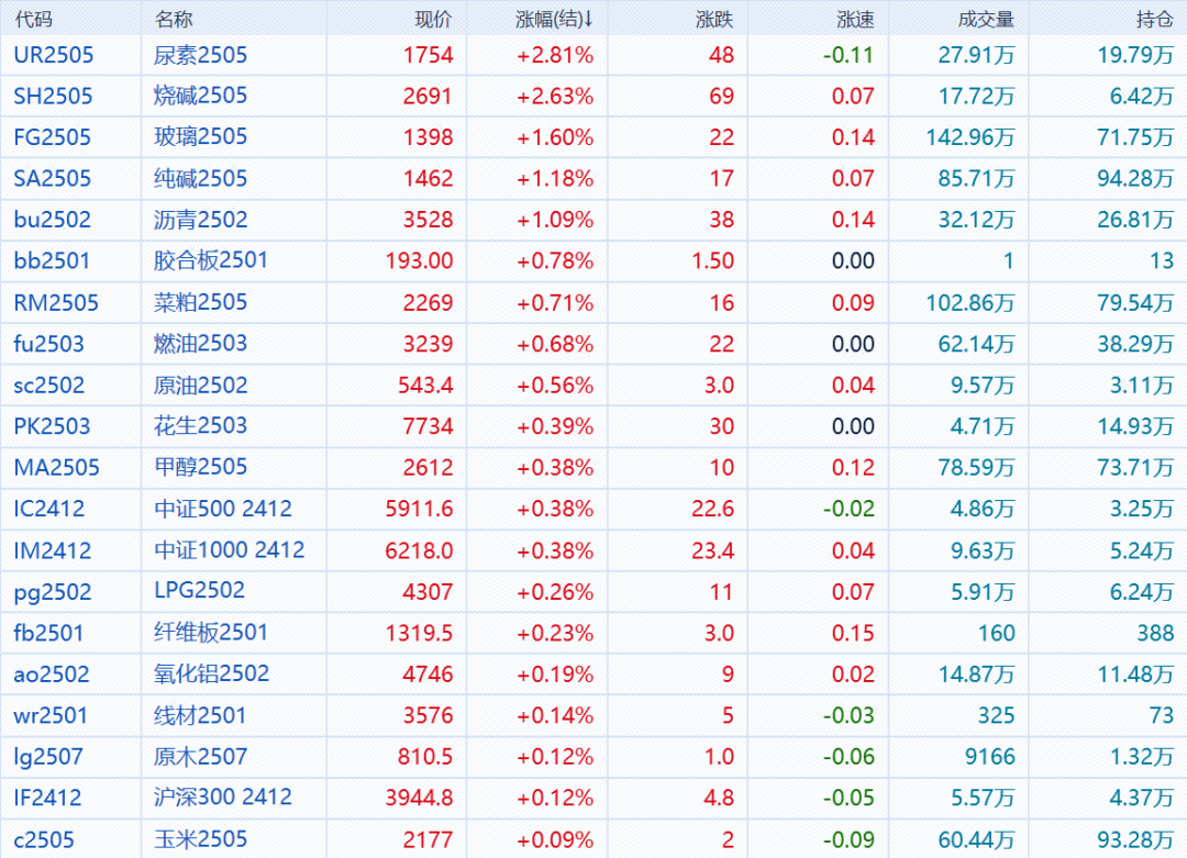 沪深300股指期货(IF)主力合约涨0.12%,上证50股指期货(IH)主力合约跌0.29%,中证500股指期货(IC)主力合约涨0.38%,中证1000股指期货(IM)主力合约涨0.38%。