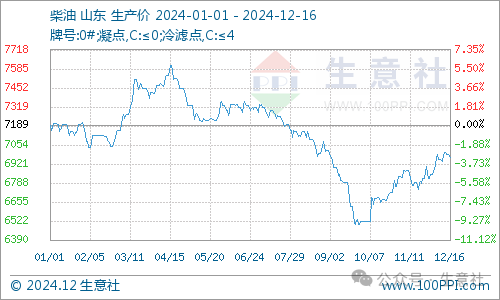 2024年国内柴油走势整体呈现“N”型,柴油最低价是9月底的6501元/吨,最高价是4月中旬的7607.4元/吨,年内最大振幅为17.02%。