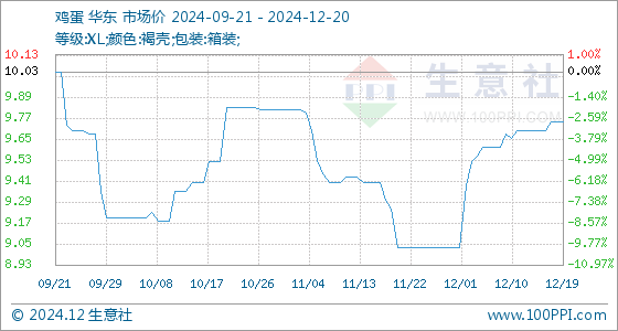 12月20日生意社鸡蛋基准价为9.75元/公斤