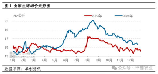 12月份气温下降,南方地区腌腊进入高峰期,终端需求逐渐提升,但由于生猪供应较为充沛,生猪价格环比仍下降。由于2023年12月北方地区受猪病影响,中小体重生猪提前出栏,导致2023年12月份猪价,因此2024年12月猪价同比仍上涨。