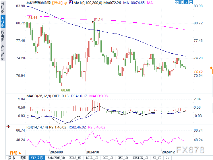 技术面上,布伦特原油和WTI原油价格目前都处于较低水平,且近期的连续跌势使得市场情绪显得较为悲观。若全球经济复苏乏力且美元继续强势,油价恐将进一步面临下行压力。预计布伦特原油可能测试72美元/桶的支撑位,而WTI原油则可能在68美元/桶附近找到支撑。