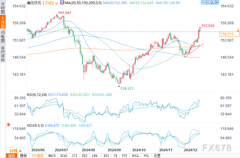 北京时间18:51,英镑/美元报1.2504/05,涨幅0.03%。欧元/美元报1.0388/89,涨幅0.26%。美元/日元报156.732/733,跌幅0.43%。