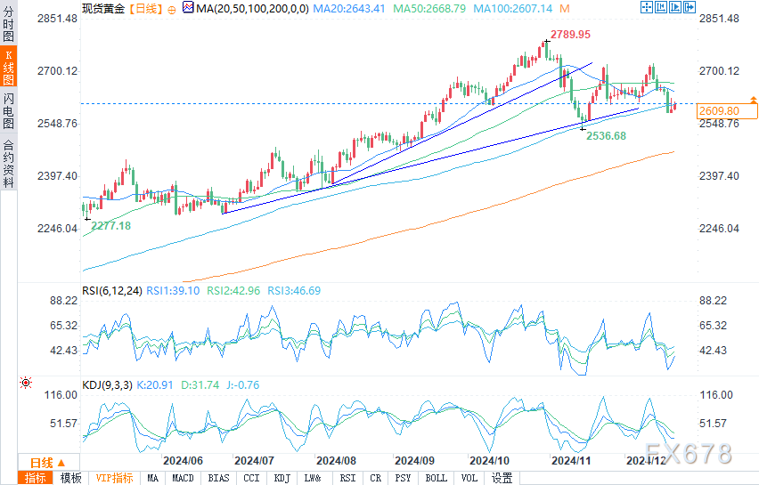 汇通财经APP讯——周五(12月20日)欧盘时段,金价走高,美国11月PCE物价指数同比增长2.4%,增幅低于预期值2.5%,降温的数据有利于金价。然而,金价仍受到2607.35-2629.13美元阻力位的限制,在2669.00美元附近的50日移动均线将构成进一步的挑战。受美联储在降息问题上的强硬立场拖累,金价本周已下跌约1.8%。