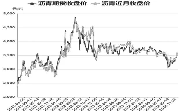图为沥青主力和近月合约收盘价(单位:元/吨)