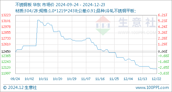 12月23日生意社不锈钢板基准价为12100.00元/吨