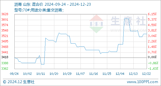 12月23日,生意社沥青基准价为3531.67元/吨,与本月初(3445.00元/吨)相比,上涨了2.52%。