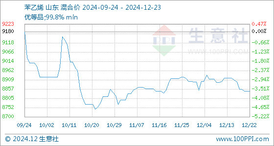 12月23日生意社苯乙烯基准价为8846.00元/吨