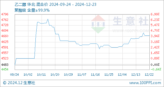 12月23日生意社乙二醇基准价为4666.67元/吨