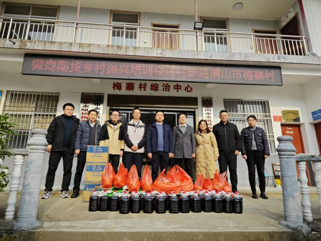 近日,徽商期货董事长、总经理储进前往潜山市水吼镇梅寨村开展乡村振兴工作调研并率队慰问当地村民和养殖户。梅寨村村委书记杨如意、驻村第一书记刘先锋、村委会成员、企业负责人及村民代表数十人参加会议。公司经营管理部、合肥分公司金融二部相关负责同志陪同参加调研,并组织“保险+期货”培训会。