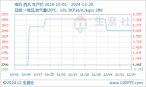 上游电石方面,12月份以来,电石价格开始下滑,高位回落为主,根据生意社监测的数据显示,上周电石价格跌幅在0.58%。整体来看周内电石市场价格上涨乏力,支撑作用有限,且随着下游PVC重新陷入低迷,料电石价格也可能出现反复行情。