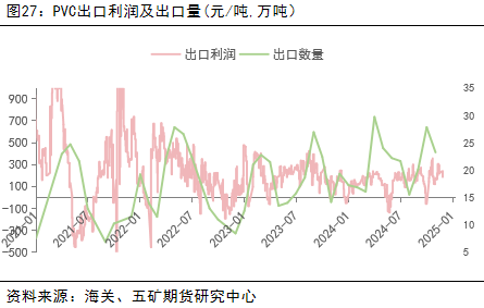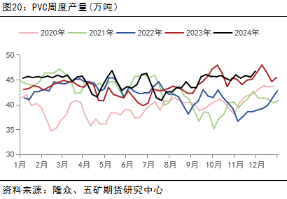 利润方面,2024年全年来看,PVC生产企业大部分时间都处于亏损状态。上半年PVC价格偏弱,且电石价格上涨后成本高企,产业亏损较大。下半年,由于烧碱价格偏强运行,使得氯碱综合利润较上半年有较大改善。2025年,预计将持续压缩利润以清退产能。