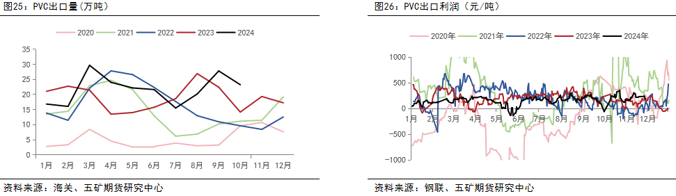 近期印度出台PVC反倾销税及BIS法案推进,预计明年PVC出口为保存量为主,难有亮点。出口量将根据出口利润及印度采购节奏变化。