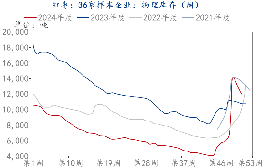 2.当前仍处于红枣消费旺季,红尘去库较快,去库进度明显快于往年。预计节前盘面下方存有较强支撑。