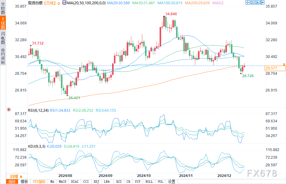 汇通财经APP讯——周一(12月23日)欧盘时段,白银市场出现反弹,价格上行目标指向30美元关口。我们也有一个之前的上升趋势线,现在应该提供阻力。市场也在200日移动均线附近徘徊,因此它在图表上形成了一个非常嘈杂的位置。此外,接下来一两周有节假日,这会影响流动性,因此我确实不太确定就白银而言,能从图表中解读出多少有效信息。换句话说,当前的情况就是我们在消磨时间,等待动能显现。