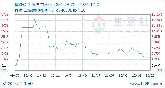 12月24日生意社螺纹钢基准价为3341.43元/吨
