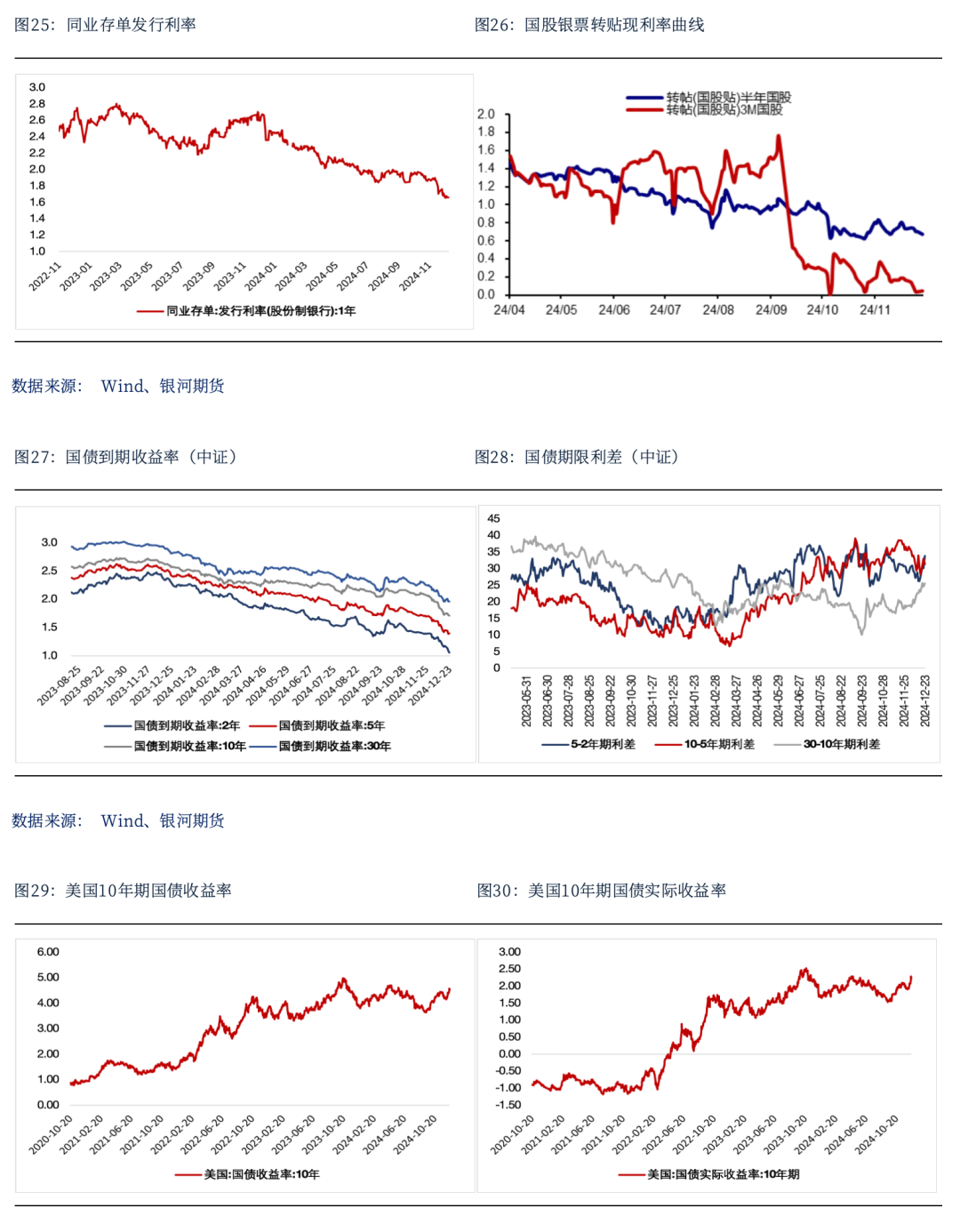 操作上,单边建议投资者暂观望为主。套利方面,货币政策转松预期可能驱动收益率曲线陡峭化,叠加央行重提利率风险对长端压制更大,我们建议投资者可考虑择机参与做陡曲线交易。但节奏上需留意一方面当前TF主力合约相较于现券的估值仍相对偏高;另一方面,TL主力合约CTD券与同期限活跃券相比,流动性溢价较高、利差较大,后续存在修复的可能。
