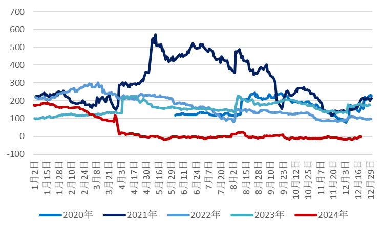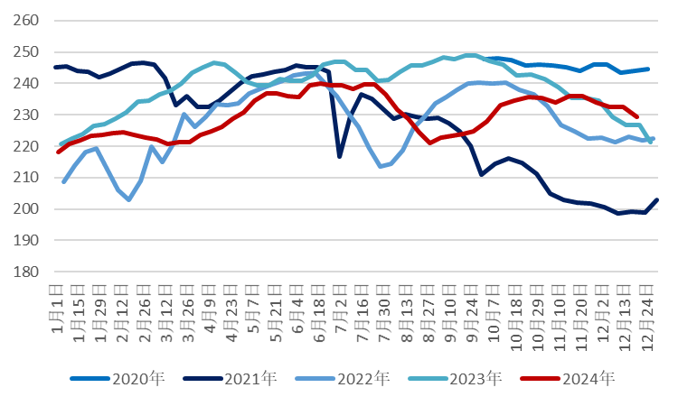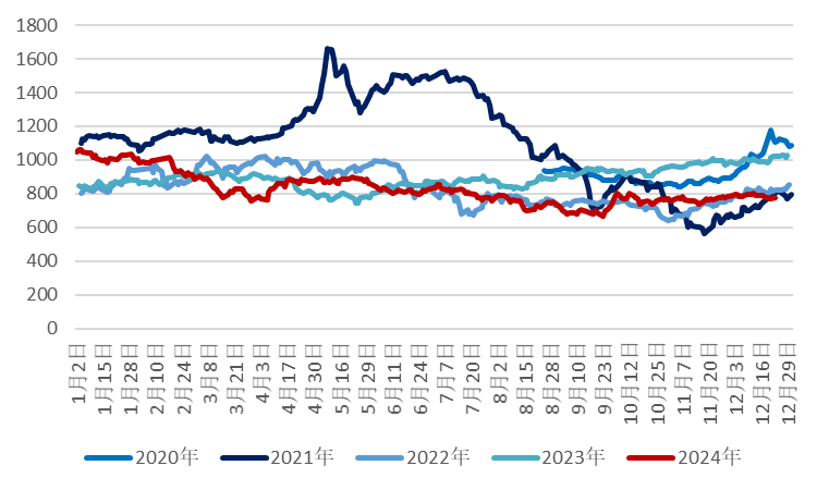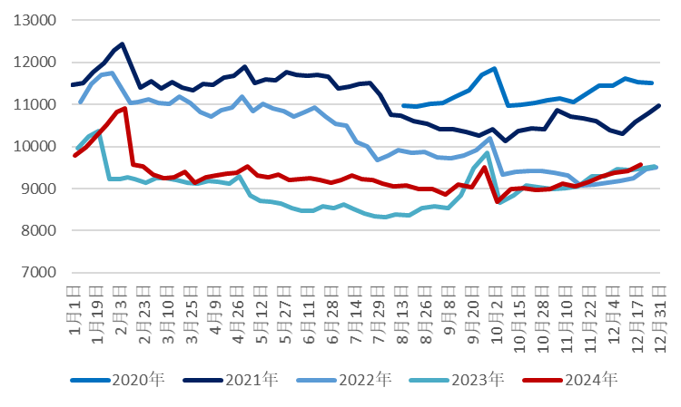 另一方面,钢厂刚需补库为铁矿石需求带来支撑。每年进入11、12月,钢铁行业冬储带来的淡季需求增加对盘面的影响不容小觑。根据历年对于春节前PB粉美金价格的统计显示,国庆后至春节前PB粉美金价格分别上涨68.2%、59.3%和25.5%。冬季钢厂补库周期内,矿价易涨难跌。更重要的是,虽然市场普遍对冬储预期走弱,但不可否认的是,钢厂确实一直在补库,年内的低库存策略在铁矿石身上并没有显现出超出季节性的低位。根据钢联数据,周内247家钢厂进口矿库存为9571.7万吨,环比增139.8万吨,同比增81.73万吨。钢厂补库的动作和近期铁水的高位对铁矿石的需求有所支撑。加上港口库存环比已然走低,国内的补库和海外的减发运效果已然显现。