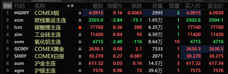 外盘金属均飘红氧化铝跌2.4%沪锌涨超1%欧线集运跌近3%【SMM午评