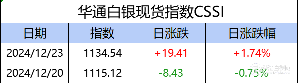 华通白银现货指数CSSI走势日报,今日指数1134.54,日涨跌+19.41,日涨跌+1.74%