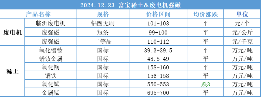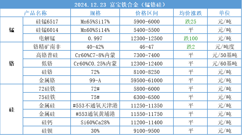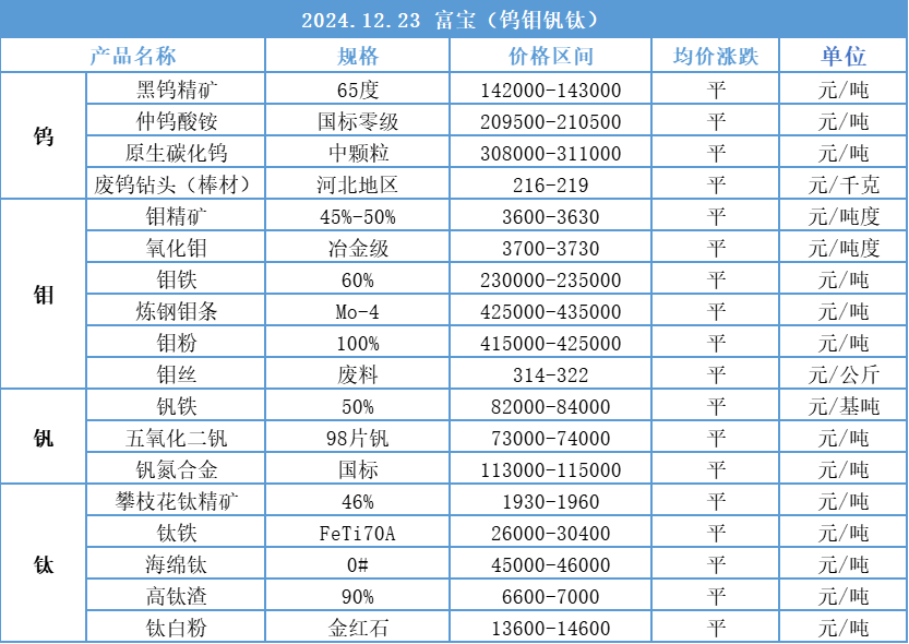 2024.12.23富宝铁合金小金属报价行情一览丨年前格局难以逆转,钴价继续走低