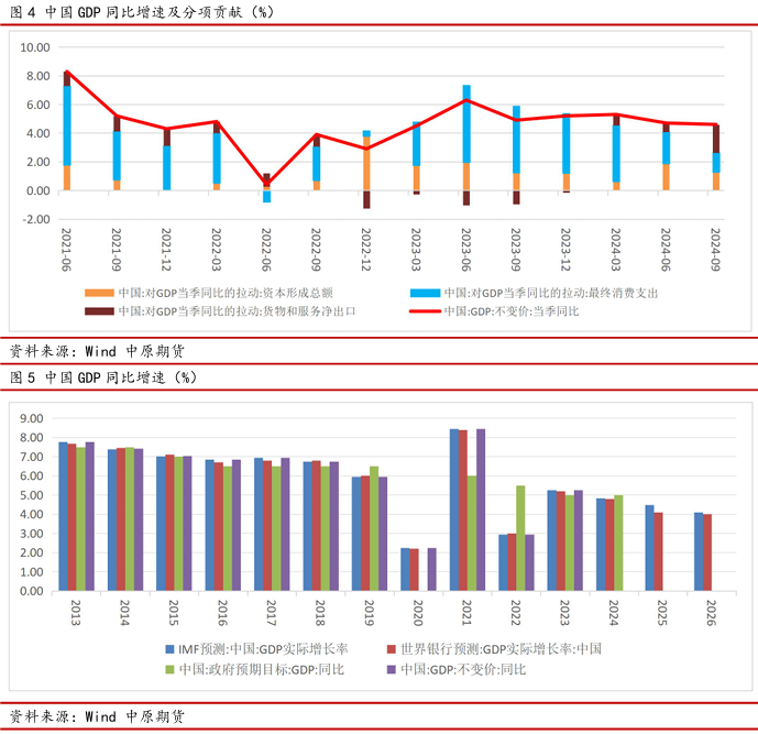 展望2025年,预计全年GDP增速目标仍在5%左右。外部环境依然复杂严峻,内部需求不 足的矛盾还没有根本解决,因此,国内政策端仍有较大空间。