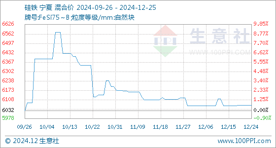 12月25日,生意社硅铁基准价为6070.00元/吨,与本月初(6067.14元/吨)相比,上涨了0.05%。