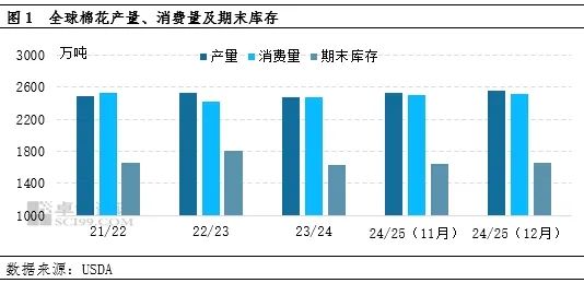 12月份2024/25年度全球棉花产量、期末库存均上调