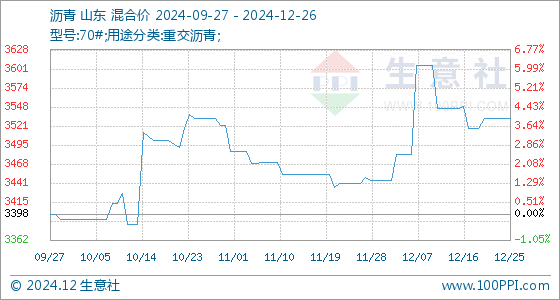 12月26日,生意社沥青基准价为3531.67元/吨,与本月初(3445.00元/吨)相比,上涨了2.52%。