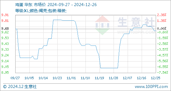 12月26日生意社鸡蛋基准价为9.65元/公斤