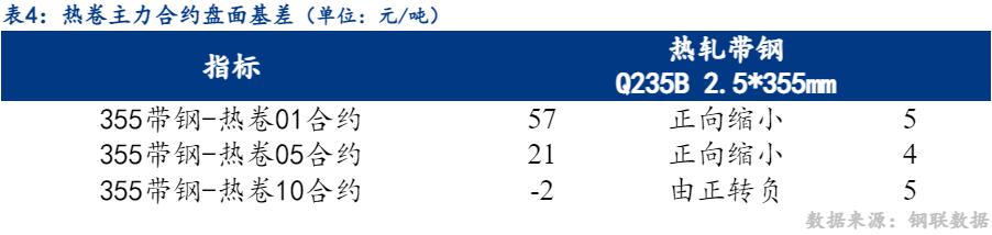 26日市场热卷05合约与355带钢价差正向缩小4元/吨,热卷01合约与355带钢价差正向缩小5元/吨。