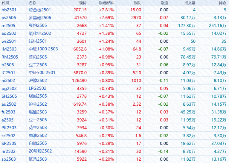 12月26日,午盘收盘,国内期货主力合约涨跌不一,多晶硅涨近8%,氧化铝、豆粕涨超1%。跌幅方面,BR橡胶、工业硅跌近3%,玻璃、集运欧线跌超2%,PTA跌近2%。