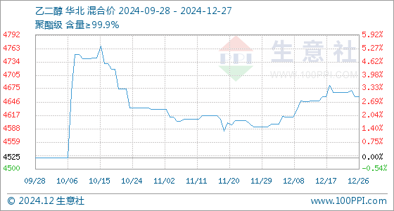 12月27日生意社乙二醇基准价为4658.33元/吨