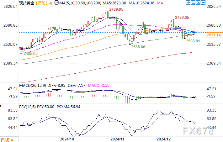 北京时间12月27日10:11现货黄金报2631.14美元/盎司