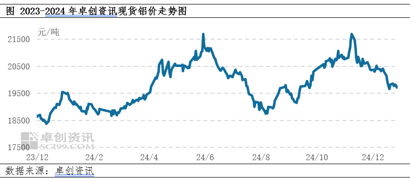 就未来三个月来看,宏观面,关注特朗普上台后贸易形势的变化、国内后续重要会议及增量措施,目前市场情绪趋向谨慎。基本面暂无结构性矛盾,持续关注氧化铝价格拐点,预计或将发生在2月份。需求端需关注春季前后加工厂开开停工情况,目前市场预期今年加工领域开工负荷或将略低于去年。来年2月春节过后市场启动,价格将有复苏,均价或在20200元/吨,3月工农业生产升温,用铝需求的好转或将带动铝价上行至20600元/吨左右。